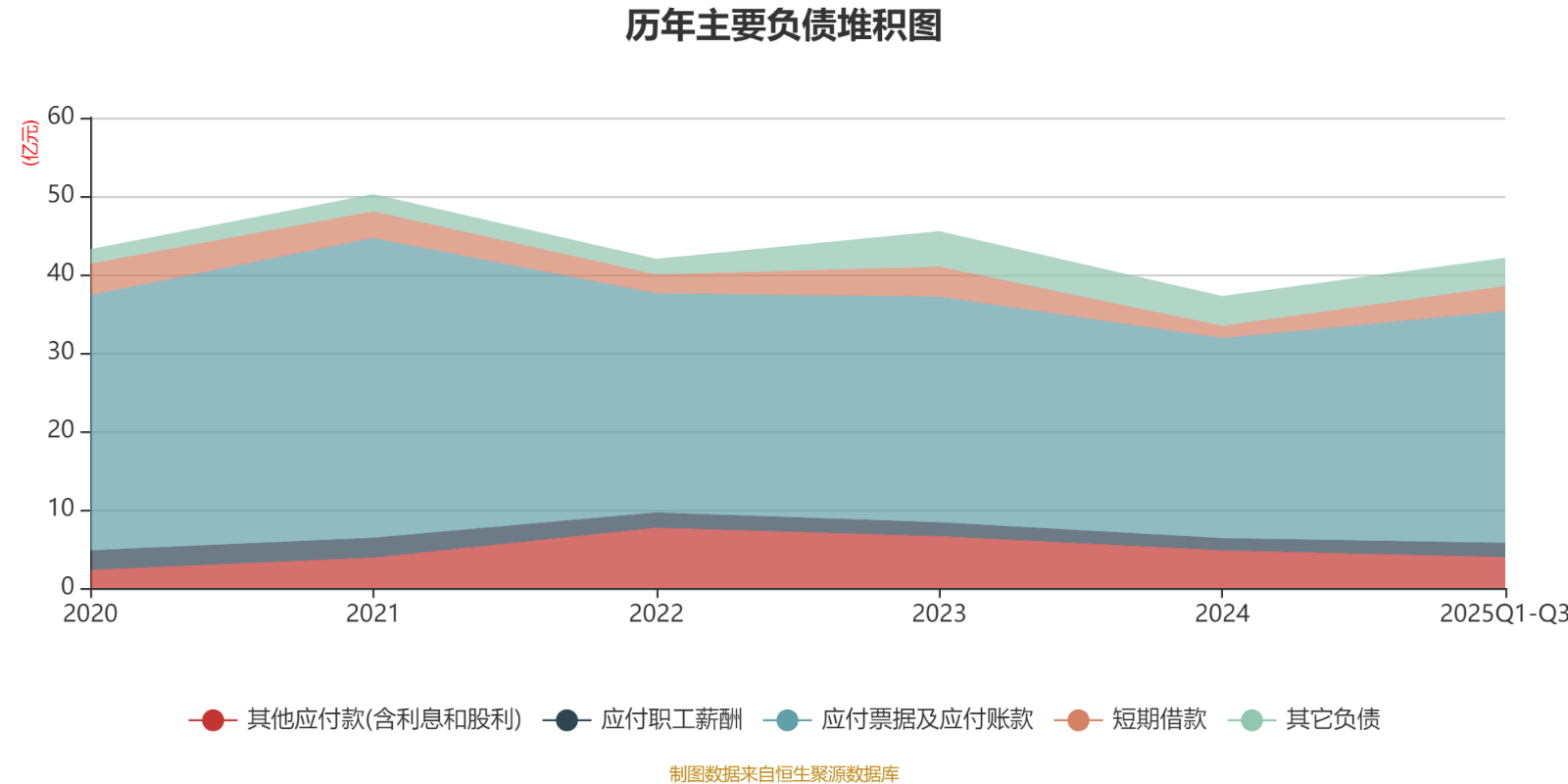 负债重大变化方面,截至2025年三季度末,公司应付票据及应付账款较上年末增加15.75%,占公司总资产比重上升2.95个百分点;短期借款较上年末增加104.4%,占公司总资产比重上升1.97个百分点;其他应付款(含利息和股利)较上年末减少17.94%,占公司总资产比重下降1.53个百分点;其他流动负债较上年末减少44.14%,占公司总资产比重下降0.67个百分点。