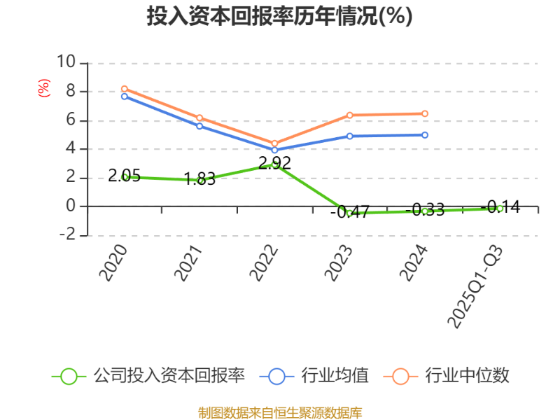 盈利能力方面, 2025年前三季度公司加权平均净资产收益率为-0.17%,同比下降0.12个百分点。公司2025年前三季度投入资本回报率为-0.14%,较上年同期上升0.36个百分点。